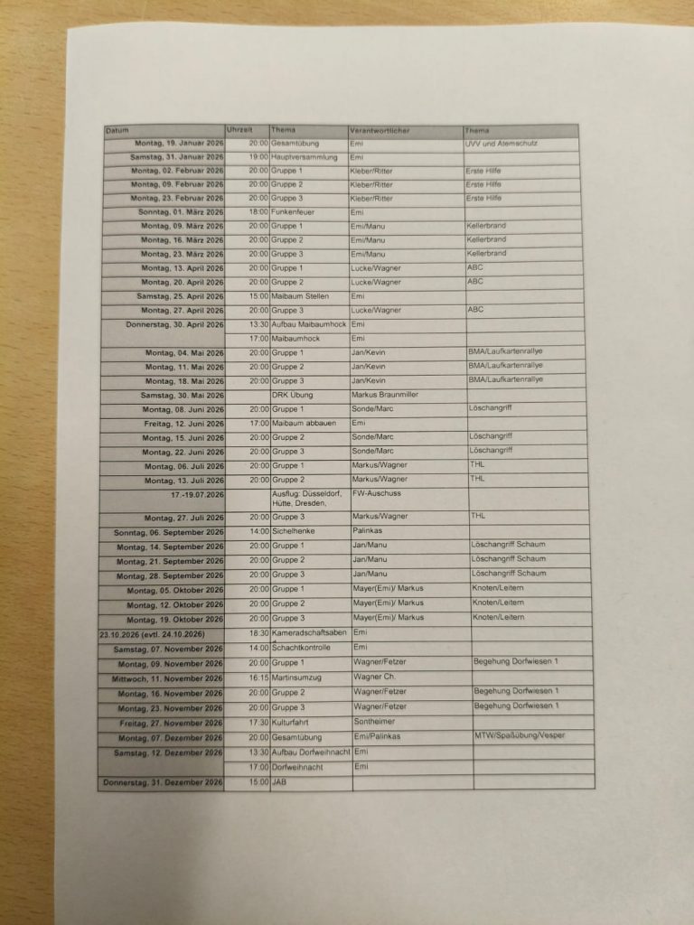 Anbei finden sich unsere Termine und Übungen für das Jahr 2025.